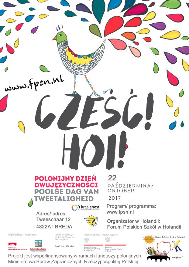 21-22 października świętujemy Polonijny Dzień Dwujęzyczności organizowany po raz drugi w Holandii, tym razem w Bredzie, już za niespełna miesiąc. Przed nami cały dzień atrakcji i wydarzeń między innymi: warsztaty dla dzieci i dorosłych, lekcja języka polskiego dla dorosłych, panel poświęcony dwujęzyczności, stoiska informacyjne organizacji polonijnych, wystawa fotografii nadesłanych na konkurs “Polska w obiektywie polonijnego dziecka”, otwarte podium, konsultacje pedagogiczne i psychologiczne.