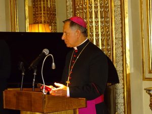 Następnie p. Daniel Brzakowski, Prezes Francuskiego Koła Przyjaciół Fundacji Pana Pawła II nakreślił plan działania organizacji w bieżącym roku i złożył zebranym życzenia opłatkowe.W swoim przemówieniu ksiądz Krzysztof Wieliczko przypomniał, że za dwa lata będziemy obchodzić 100. rocznicę urodzin Jana Pawła II zachęcając, by okres przygotowań był czasem refleksji i pogłębiania wiedzy o nauce głoszonej przez Wielkiego Papieża.Z kolei arcybiskup Mieczysław Mokrzycki, który przez wiele lat był osobistym sekretarzem Jana Pawła II, podzielił się swoimi wspomnieniami oraz opowiedział o sytuacji kościoła katolickiego na Ukrainie oraz o szczególnej roli polskiego papieża w jego odbudowie.