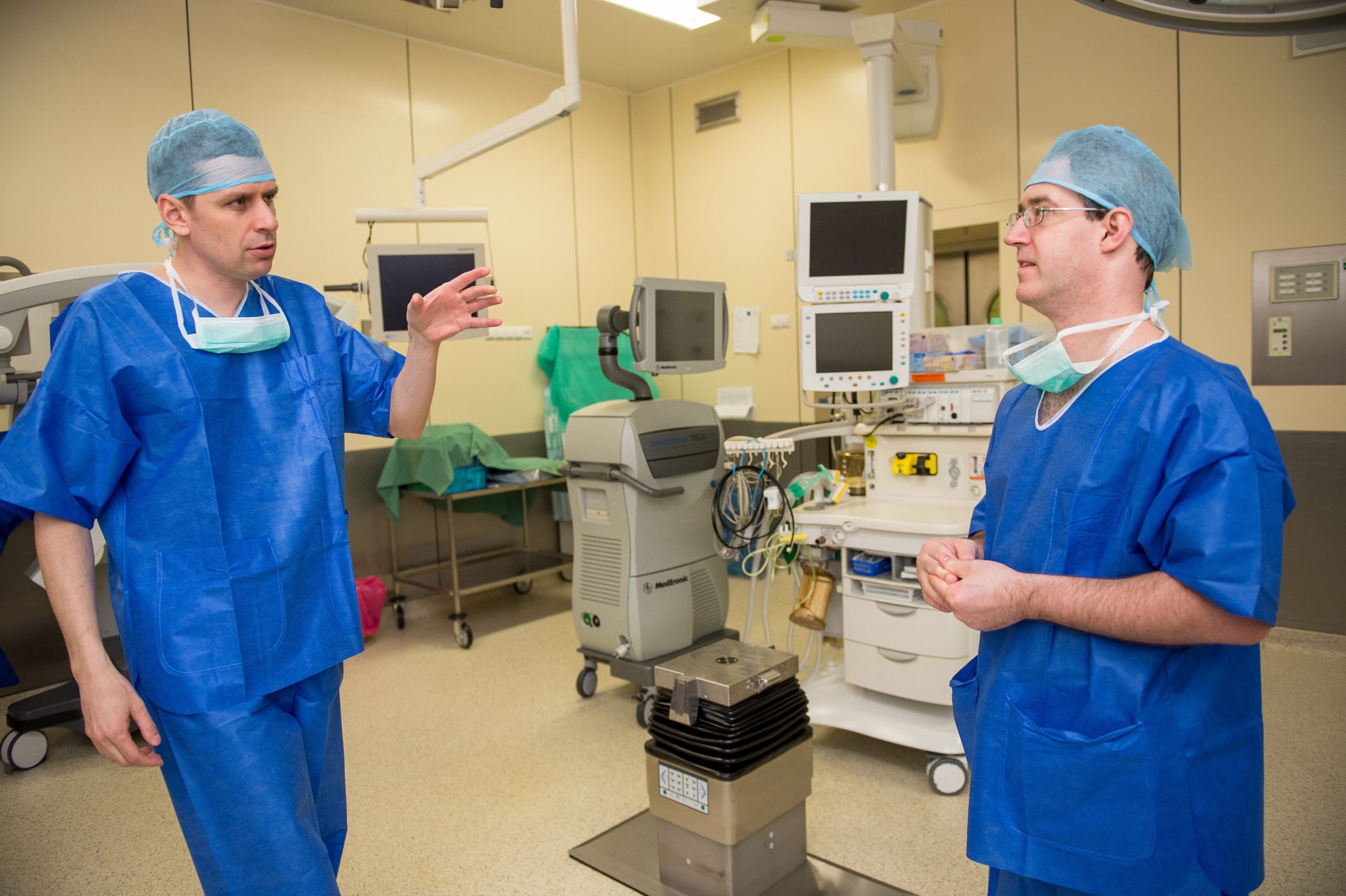 Wroc³aw 11.02.2015. Dr Pawe³ Tabakow (L) z Kliniki Neurochirurgii USK we Wroc³awiu – koordynator projektu rekonstrukcji rdzenia krêgowego i dr Wojciech Fortuna (P) z Instytutu Immunologii i Terapii Dowiadczalnej PAN i Kliniki Neurochirurgii USK- odpowiada³ za hodowlê komórkow¹. Dariuszowi Fidyce, pacjentowi z uszkodzonym rdzeniem krêgowym, po raz pierwszy na wiecie, w kwietniu 2012 roku przeszczepiono glejowe komórki wêchowe pobrane z mózgu. (mk/awol) PAP/Maciej Kulczyñski